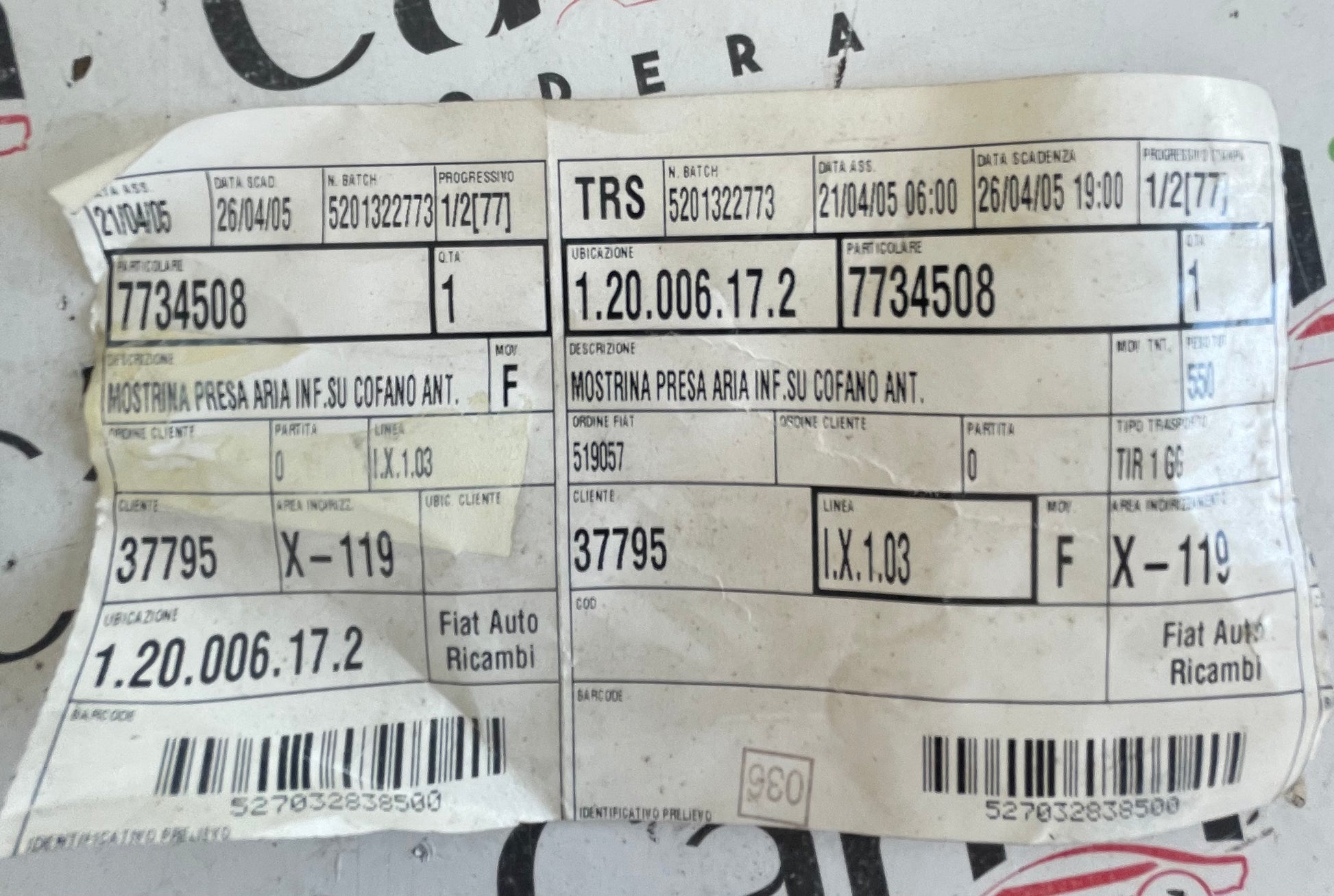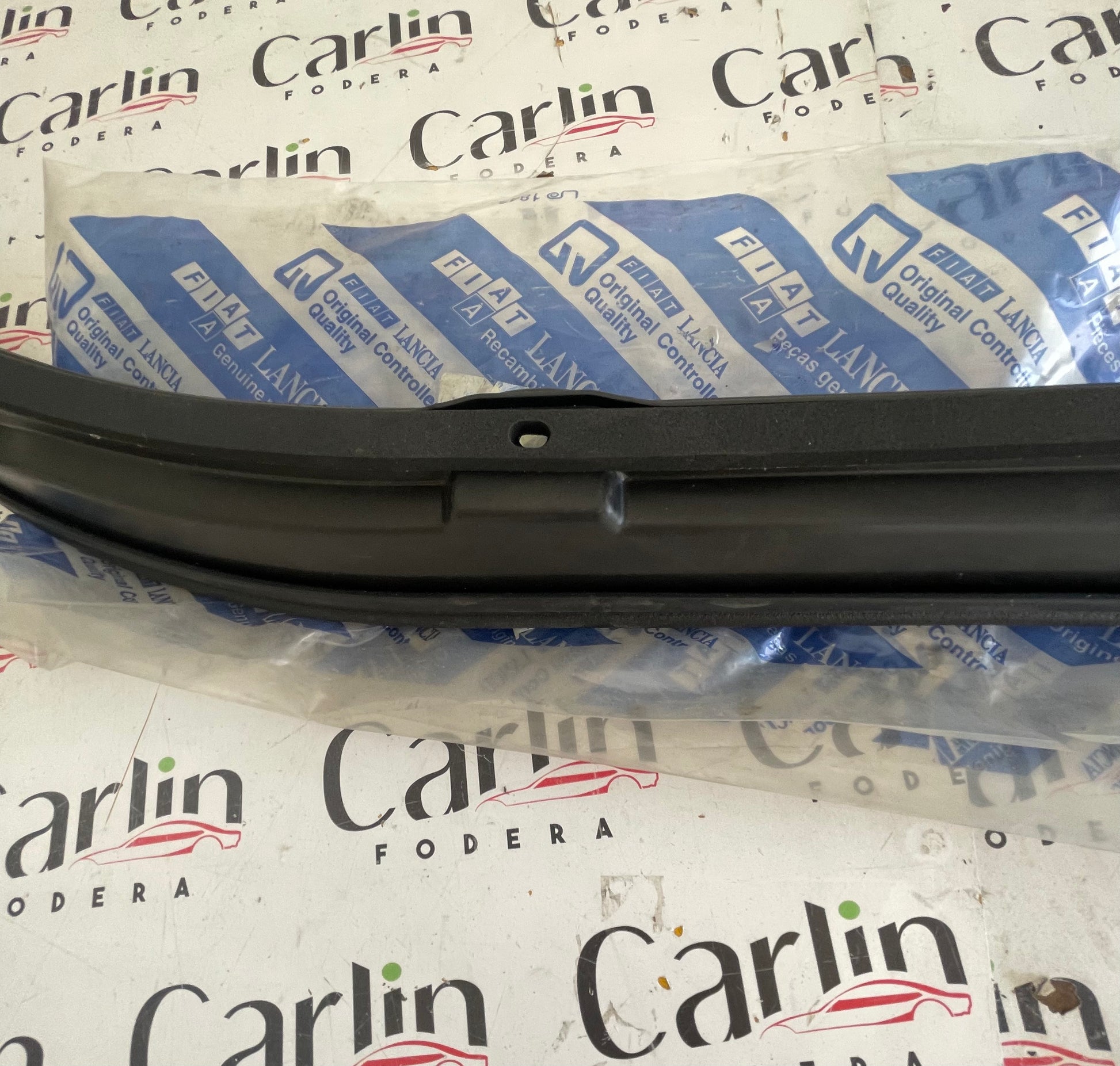 Mostrina guarnizione inferiore sotto parabrezza per Fiat Punto GT. Prodotto nuovo, originale Fiat, proveniente da fondo di magazzino dell'epoca.